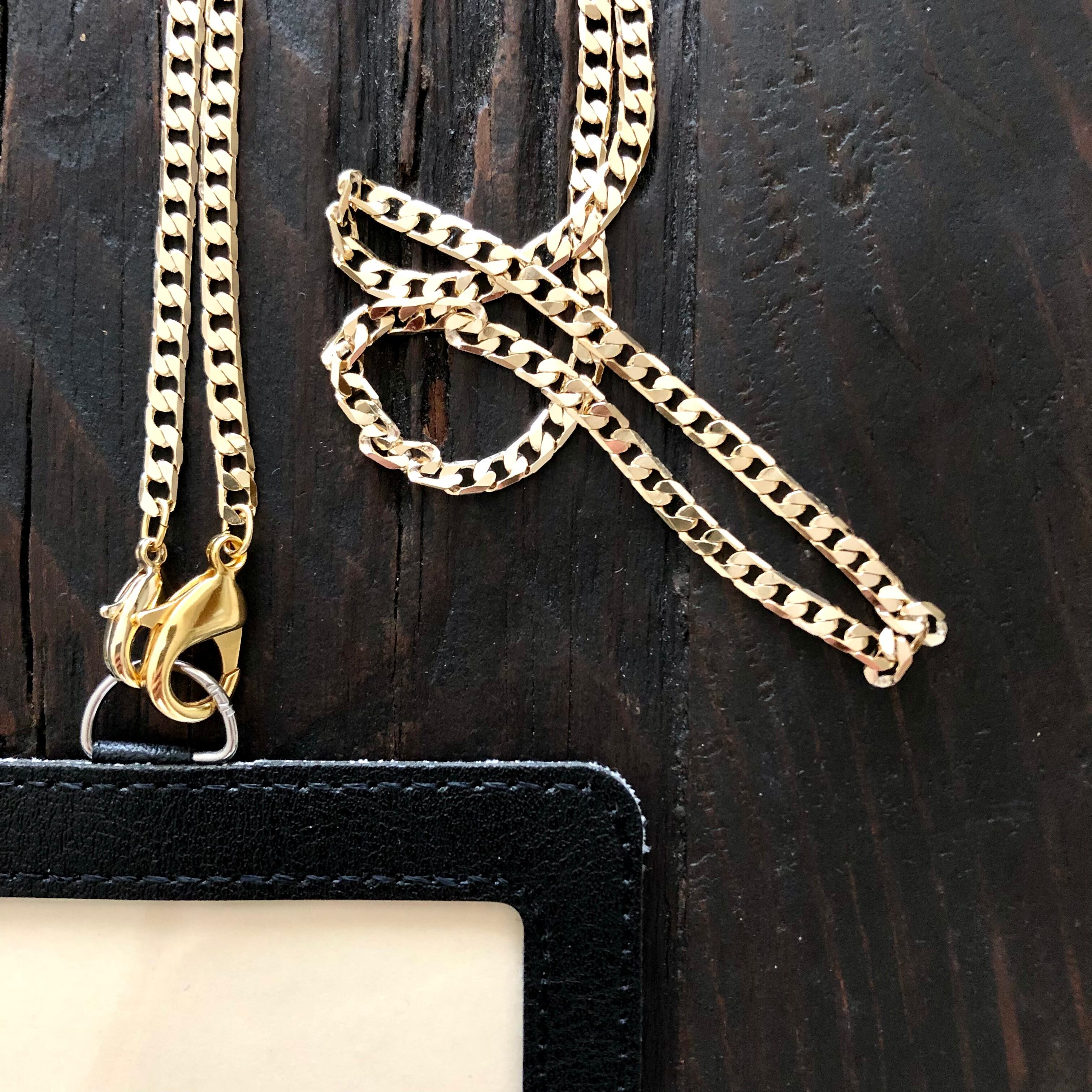 ゴールド色のチェーンを使った、ネックレスみたいなネックストラップ。